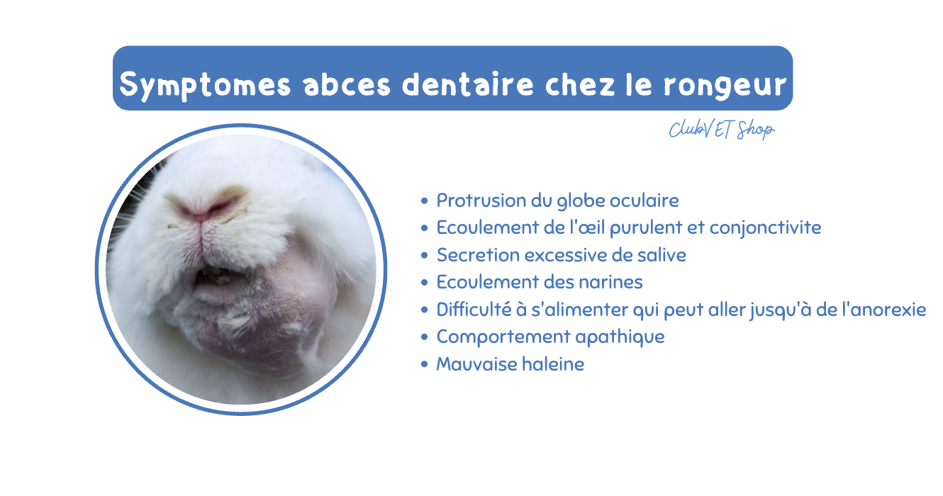Les abcès sont des poches de pus causées par une infection dentaire. Ils peuvent être associés à des facteurs génétiques, surtout chez le lapin bélier (forme de la face), apparaître à la suite d’un traumatisme, ou d’une malocclusion non traitée.